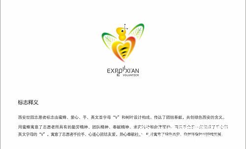 西安世園會志愿者已經有了個可愛動聽的名字——小蜜蜂。目前,西安世園會志愿者標志也正式亮相,主圖案就是一只振翅的小蜜蜂。西安世園會志愿者標志一看就是一只振翅的小蜜蜂。顏色亮麗、形象可人。