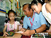 [摘要]“我希望這只小魚能游到臺灣去!”美術教室里一位小朋友把自己剛剛畫就的作品送到了臺灣客人手中,并大方地送上祝福。這一舉動...