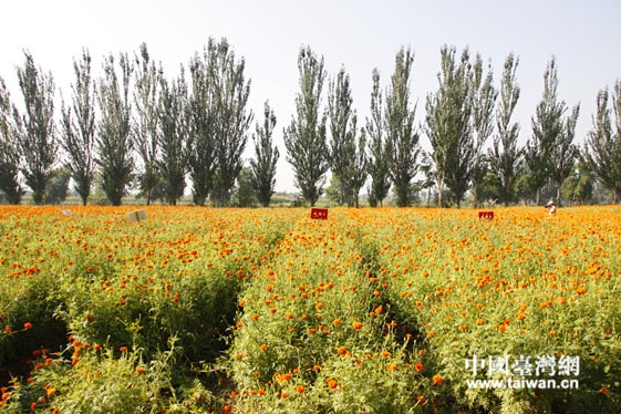 這片金燦燦色素菊的花海不但令人賞心悅目,而且還給當(dāng)?shù)氐霓r(nóng)民能帶來一筆較可觀的經(jīng)濟收入。(中國臺灣網(wǎng)記者 李婷婷)