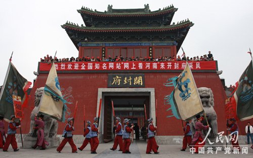 4月20日上午,第七屆“網(wǎng)上看河南”采風團迎著細雨探訪七朝古都開封。采風團先后參觀了清明上河園、開封府、龍亭、天波楊府、中國翰園碑林、鐵塔等全國著名景點。雖然春雨瀝瀝,但濃濃的宋風宋韻依然吸引了如織的游人。