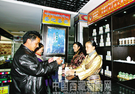 資料圖片:2008年以來,日喀則地區繼續把培育、發展農牧業產業化經營龍頭企業作為一項重要任務來抓,農牧業產業化經營有了新起色。圖為“喜孜奶羌”罐裝青稞酒在拉薩銷售火暴,市民紛紛踴躍購買。格桑吉美 攝