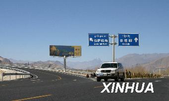 資料圖片:2006年2月25日,一輛汽車行駛在日喀則至拉薩的公路上。新華社記者拉巴次仁攝