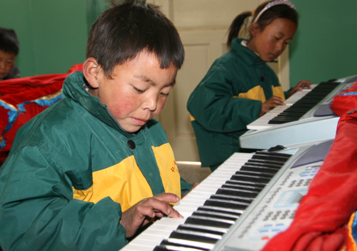 資料圖片:圖為日喀則佳木斯小學的學生在學習電子琴。(圖片來源:《西藏日報》)