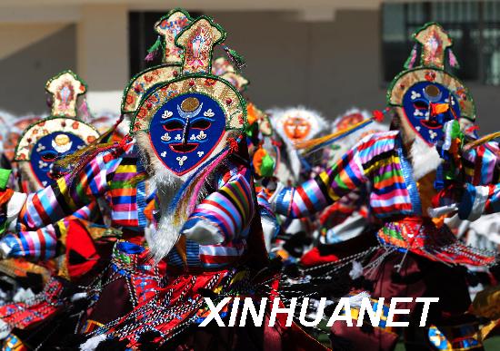 資料圖片:2008年4月8日,西藏自治區(qū)藏劇團演員在排練藏戲《吉祥奧運》。被列為首批國家級非物質(zhì)文化遺產(chǎn)保護名錄的藏戲,距今已有600多年歷史,被譽為“西藏文化的名片”。新華社記者 覺果 攝
