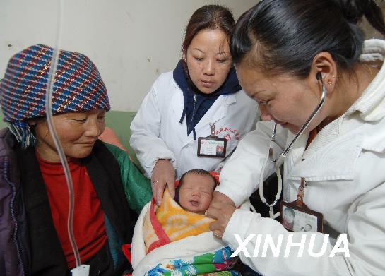 資料圖片:2007年4月9日,西藏拉薩市達孜縣人民醫(yī)院婦產(chǎn)科的醫(yī)生在給達孜縣唐嘎鄉(xiāng)農(nóng)民產(chǎn)婦卓嘎的兒子做檢查。新華社記者普布扎西攝