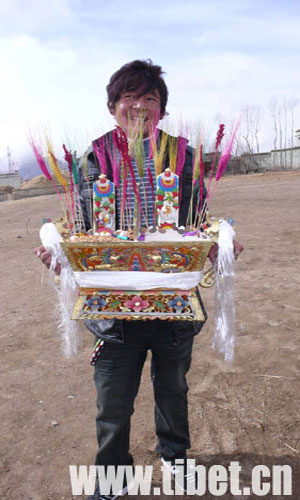 正在擺放切瑪的小伙子。 攝影:曲曉麗