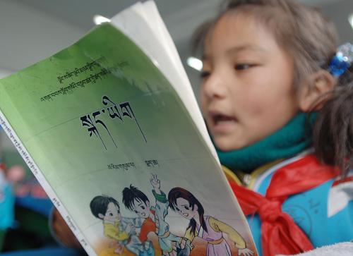 資料圖片:這是拉薩市第一小學三年級3班學生旦珍在朗讀藏語課文。 新華社記者 普布扎西 攝