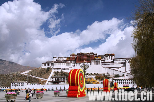 布達(dá)拉宮廣場(chǎng)的《八吉祥圖》引人注目