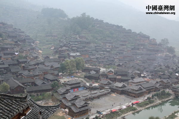 從觀景臺上俯瞰苗寨,尤感氣勢磅礴(中國臺灣網 楊永青 攝)