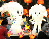 中秋之夜揚州民眾放孔明燈祈禱祖國繁榮昌盛