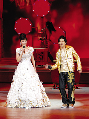 昨日最后彩排的另一個亮點當屬“英倫配”,周杰倫和宋祖英果然合作了一小段《本草綱目》的副歌。周杰倫身穿黑色和金色相間的舞臺服上場,很有潮人派頭,一曲《本草綱目》唱的現代感十足。當周杰倫唱到《本草綱目》中頗似《辣妹子》的副歌部分時,一襲白裙盡顯典雅端莊的宋祖英款款出場,與周杰倫合唱一小段,兩人南轅北轍的唱法融在一起別有特色。有趣的是,當宋祖英在深情演唱時,周杰倫則在一邊大秀Hip-hop風格的舞蹈動作。現場觀眾表示兩人無論是唱腔還是舞臺風格都頗為沖突,反倒形成了一種沖突的美感,這樣的合唱在春晚的舞臺上實在少見,有點新意。據了解,前日凌晨兩點周杰倫與宋祖英在錄音棚進行了合音錄制。兩人有禮貌地握手,還聊了一會。據說周杰倫更稱自己終于見到了偶像,周董甚至主動提出要寫一首兩人合作的歌曲。