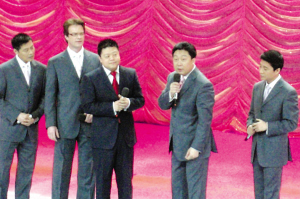 據悉,周杰倫表演期間還設置了擊鼓環節(昨日本報曾做報道),而與周董一同表演的 “紅纓束”樂團樂手們使用的鼓棰則是雙截棍,由于兩根木棍中間有鐵鏈相連,根本沒有辦法揮舞,所以樂團獨創了一段舞步,而且為此苦練一年,就連耍雙截棍比較在行的周董看后也直呼驚喜。